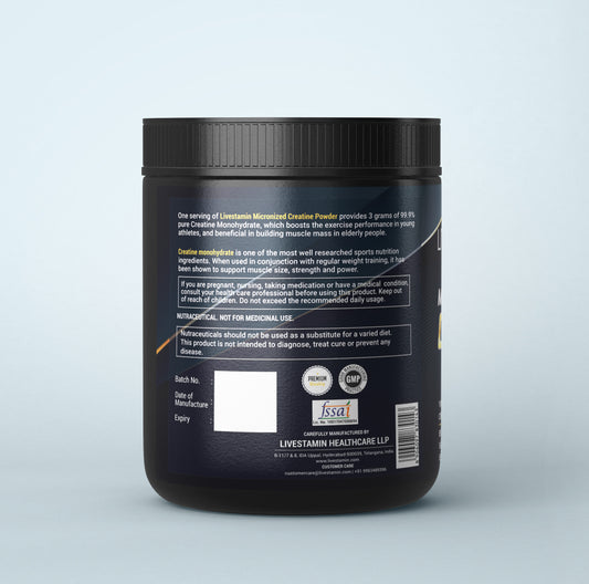 Livestamin Micronized Creatine Monohydrate Powder Supplement - 300 grams (Unflavoured, 100 Servings)