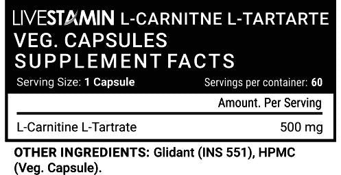 Livestamin L-Carnitine L-Tartrate (500 mg) Supplement, 60 Vegetarian Capsules