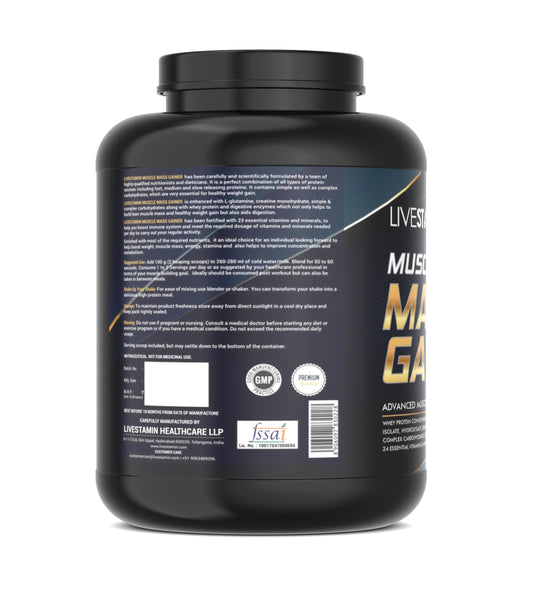 Livestamin Muscle Mass Gainer Body Building Protein Powder Supplement - 3 kg
