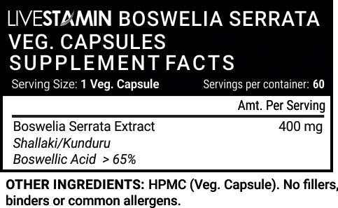 Livestamin Boswellia serrata Extract (Boswellic acid >65%) Joint Supplement, 400 mg - 60 Vegetarian Capsules