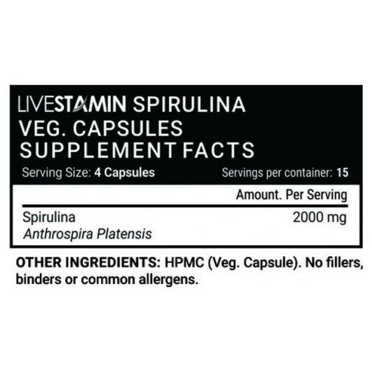 Livestamin Spirulina Supplement, 500 mg - 60 Vegetarian Capsules