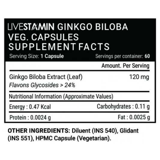 Livestamin Ginkgo Biloba Extract For Healthy Brain Function, 120 mg - 60 Vegetarian Capsules