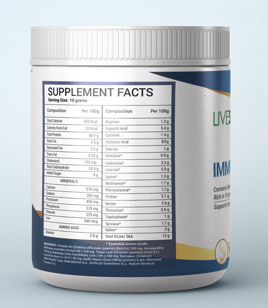 Livestamin Immunostamin, Whey Protein With Ayurvedic Herbs Amalaki, Ashwagandha, Tulasi, Mahabala, Kantakari - 300 Grams (Vanilla Flavour)