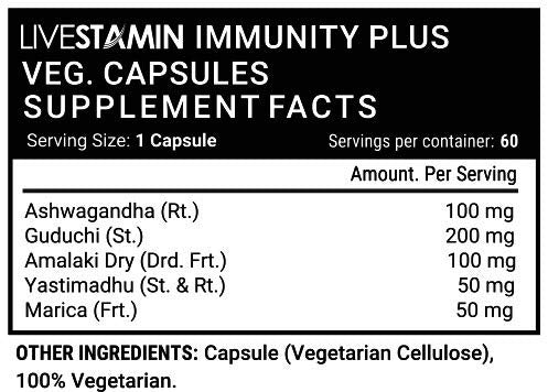 Livestamin Immunity Plus Immune Booster, 500 mg - 60 Vegetarian Capsules