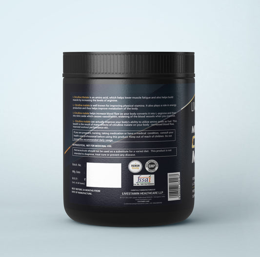 Livestamin Citrulline Malate Powder 2:1 Supplement - 200 grams (Unflavoured, 100 Servings)