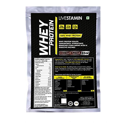 Livestamin Whey Protein Powder 35 grams Sachet - Chocolate Flavour, Sports Nutrition Bodybuilding Supplement - 30 Sachets Box