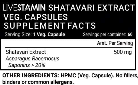 Livestamin Shatavari (Saponins > 20%) Extract, 500 mg - 60 Vegetarian Capsules
