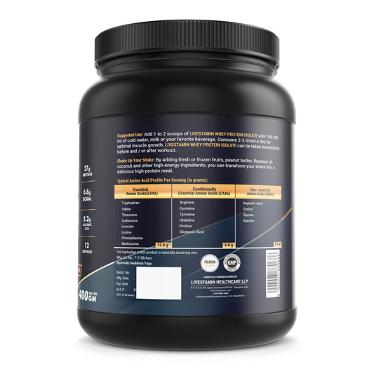 Livestamin 100% Isolate Whey Protein Powder Supplement - 400 grams